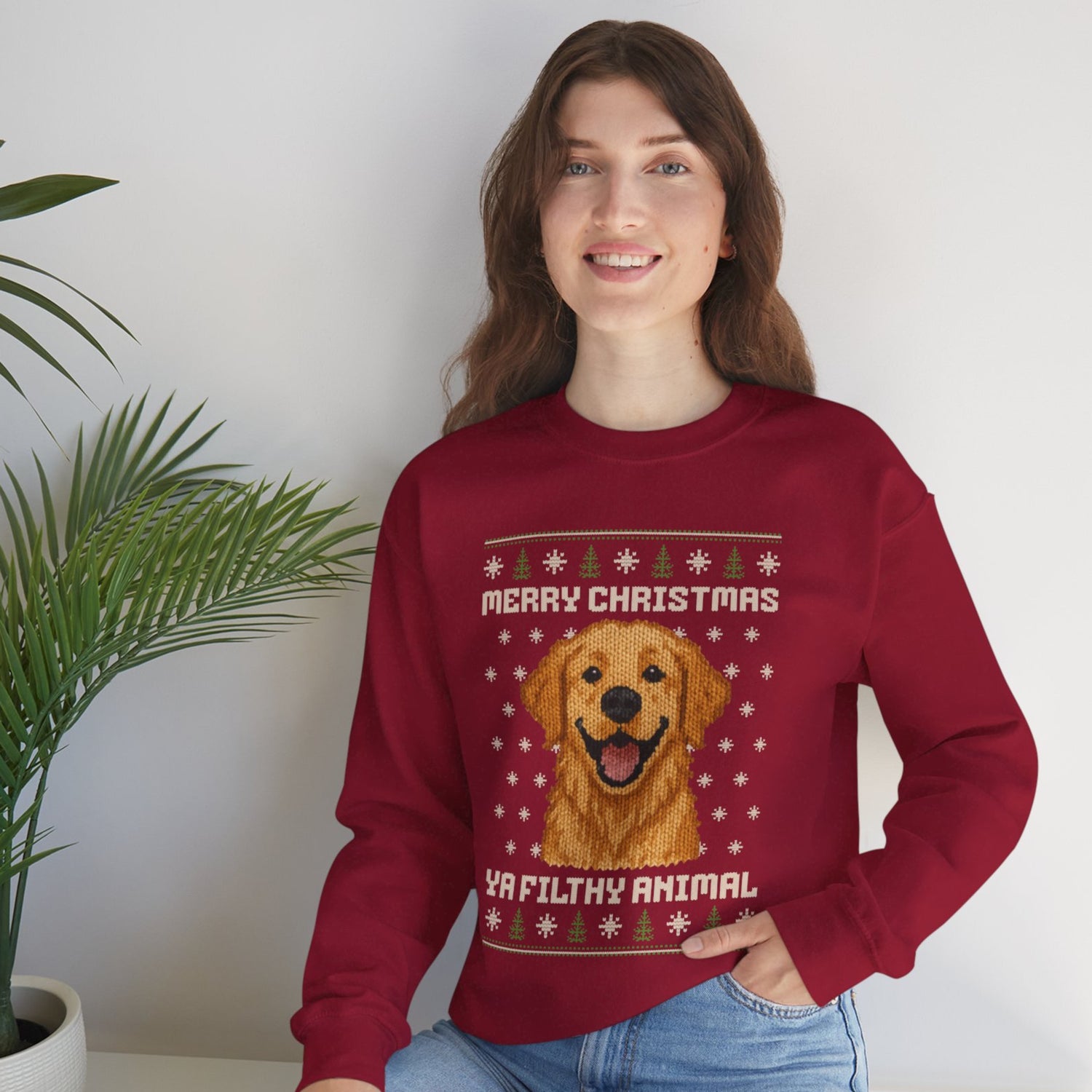 Golden Retriever Merry Christmas Ya Filthy Animal Ugly Christmas Sweatshirt