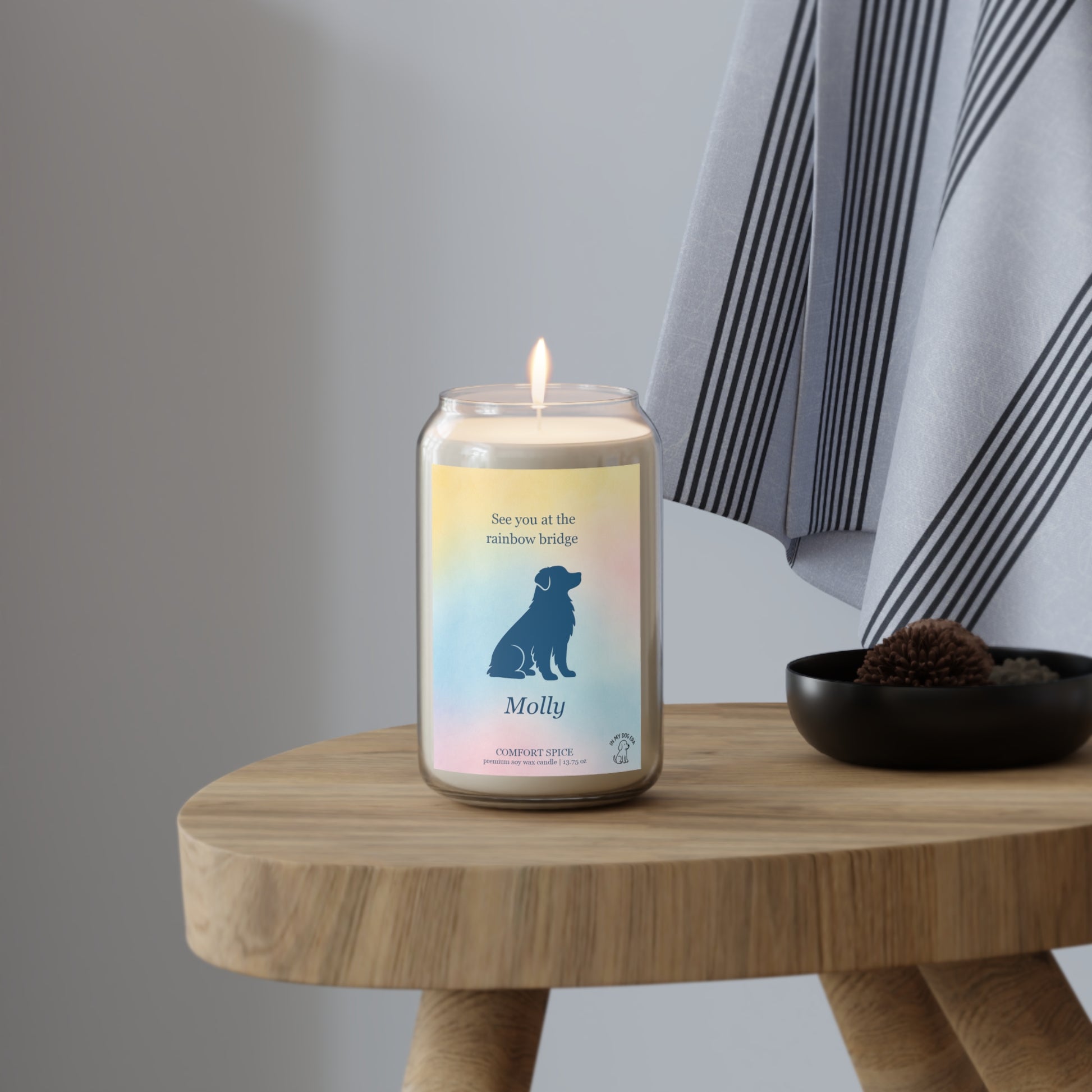 Australian Shepherd Rainbow Bridge Candle — Personalized Dog Sympathy Gift (13.75 oz soy wax)
