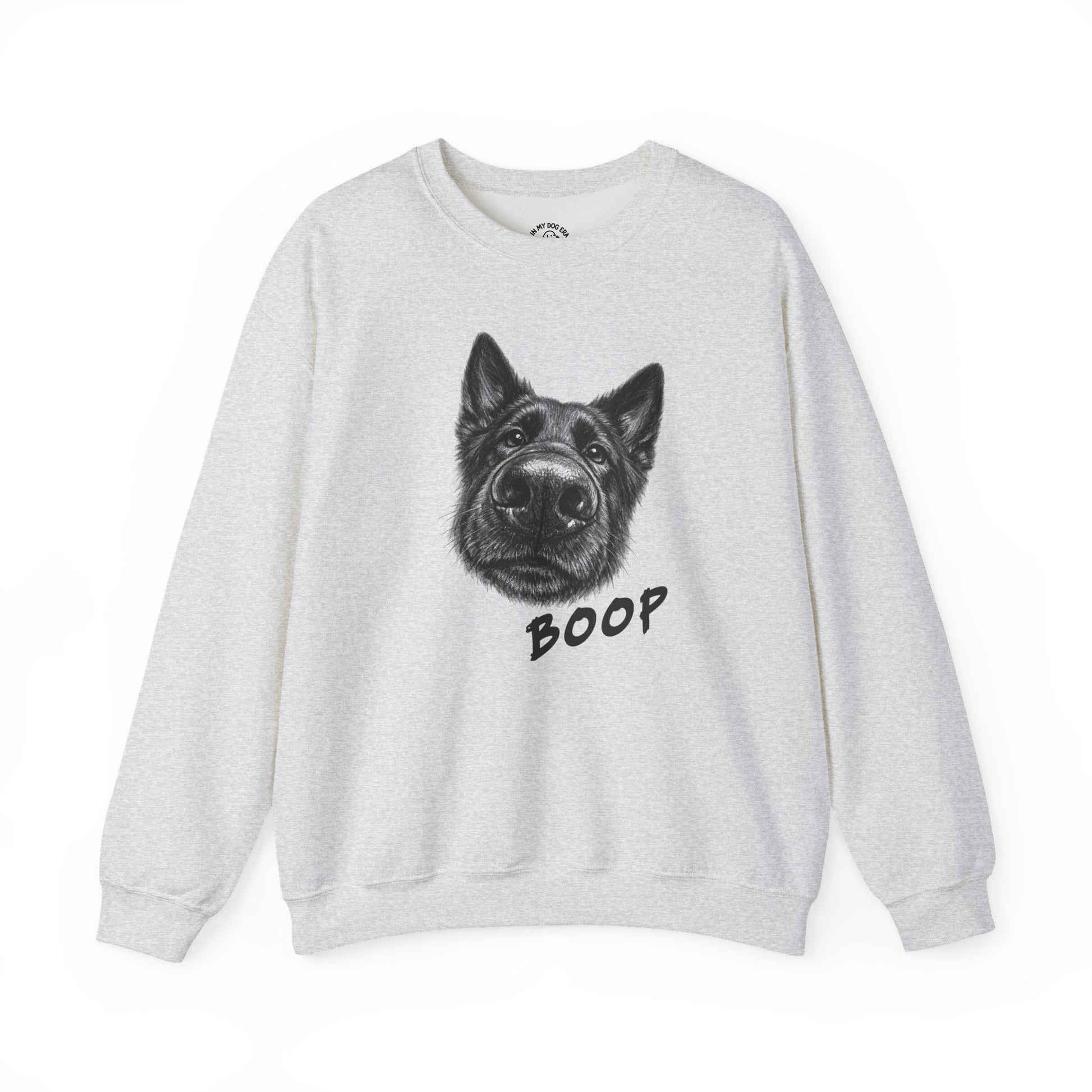 For the irresistible moment when a Black German Shepherd leans in, snout first, daring you not to boop. A cozy sweatshirt with a close-up pencil sketch and a handwritten boop that every dog person and Heeler lover instantly understands.