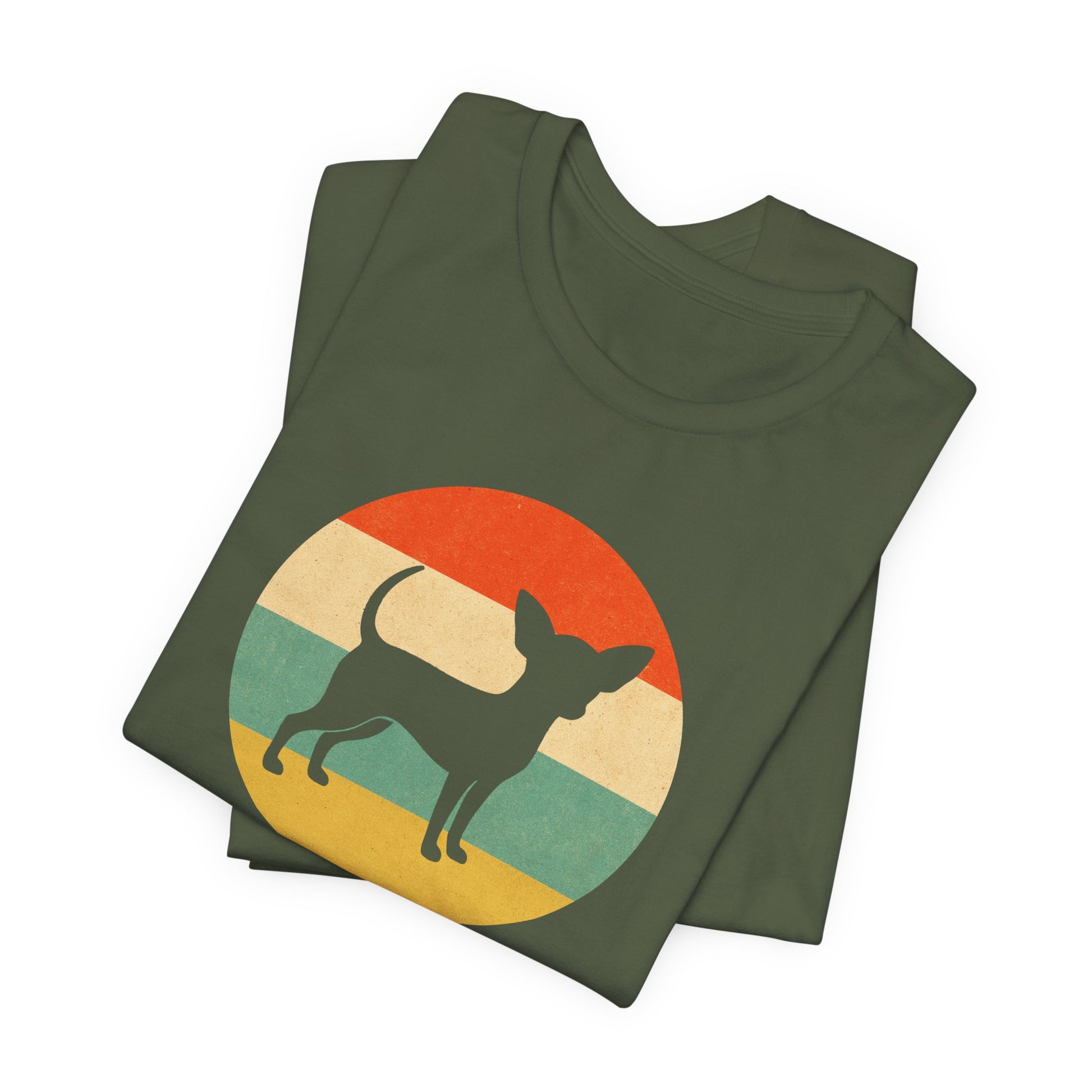 Celebrate the charm, confidence, and oversized personality of the world’s tiniest but mightiest companion with our Vintage Retro Chihuahua Tee. This design features a timeless retro-style multicolor circle behind a bold Chihuahua silhouette. It's the perfect shirt for Chi moms, Chi dads, and anyone who adores these spirited, alert, blanket-burrowing pups. Made with premium, comfortable fabric, it’s ideal for everyday wear and makes a great gift for Chihuahua owners, rescue supporters, and fans of smooth coat, long coat, apple head, or deer head Chihuahuas. Whether your Chi is patrolling the house like a tiny security guard, burrowed into a pile of blankets, or curled up on your lap like a 5-pound shadow, this shirt is for you.