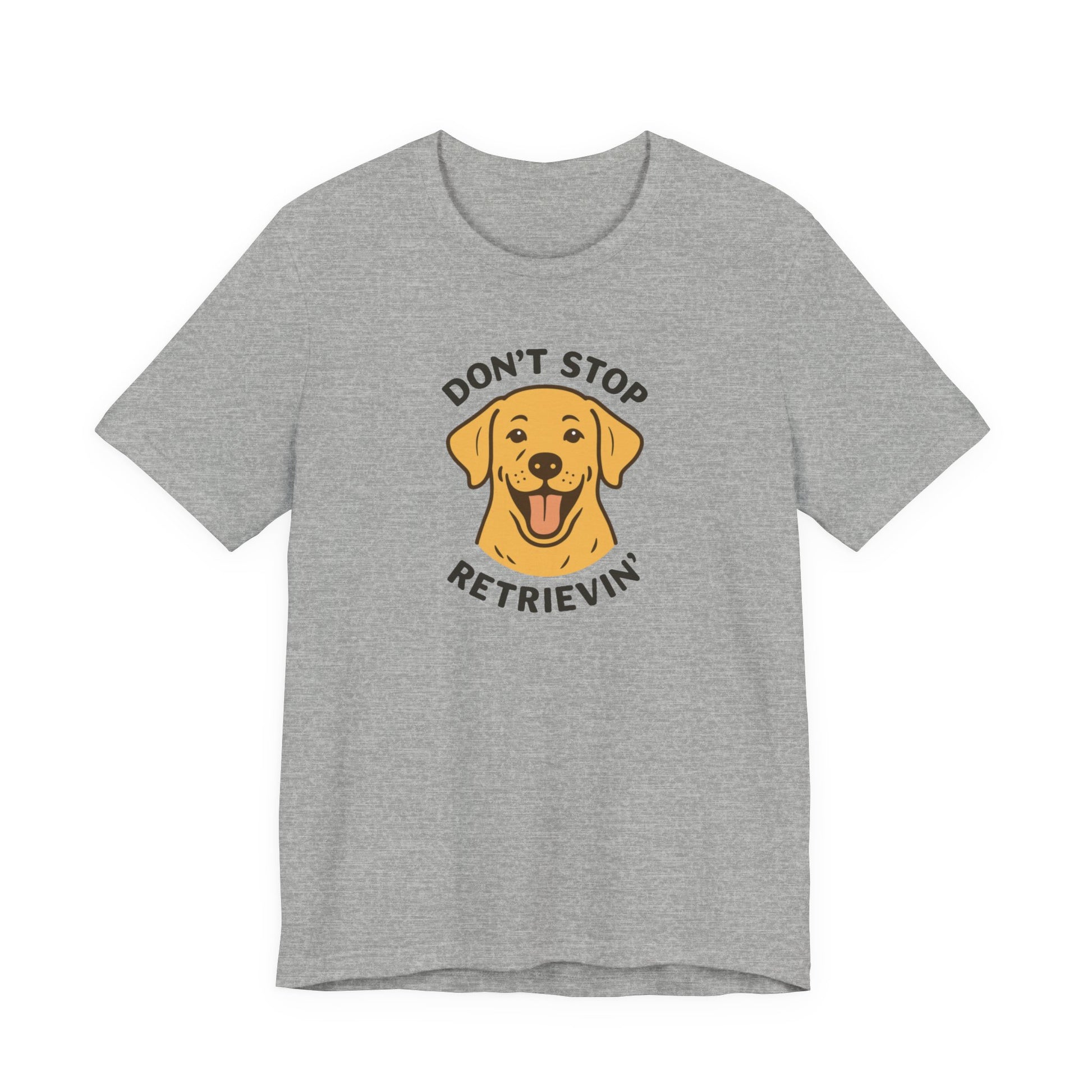 - “Don’t Stop Retrievin’” text printed on the t-shirt