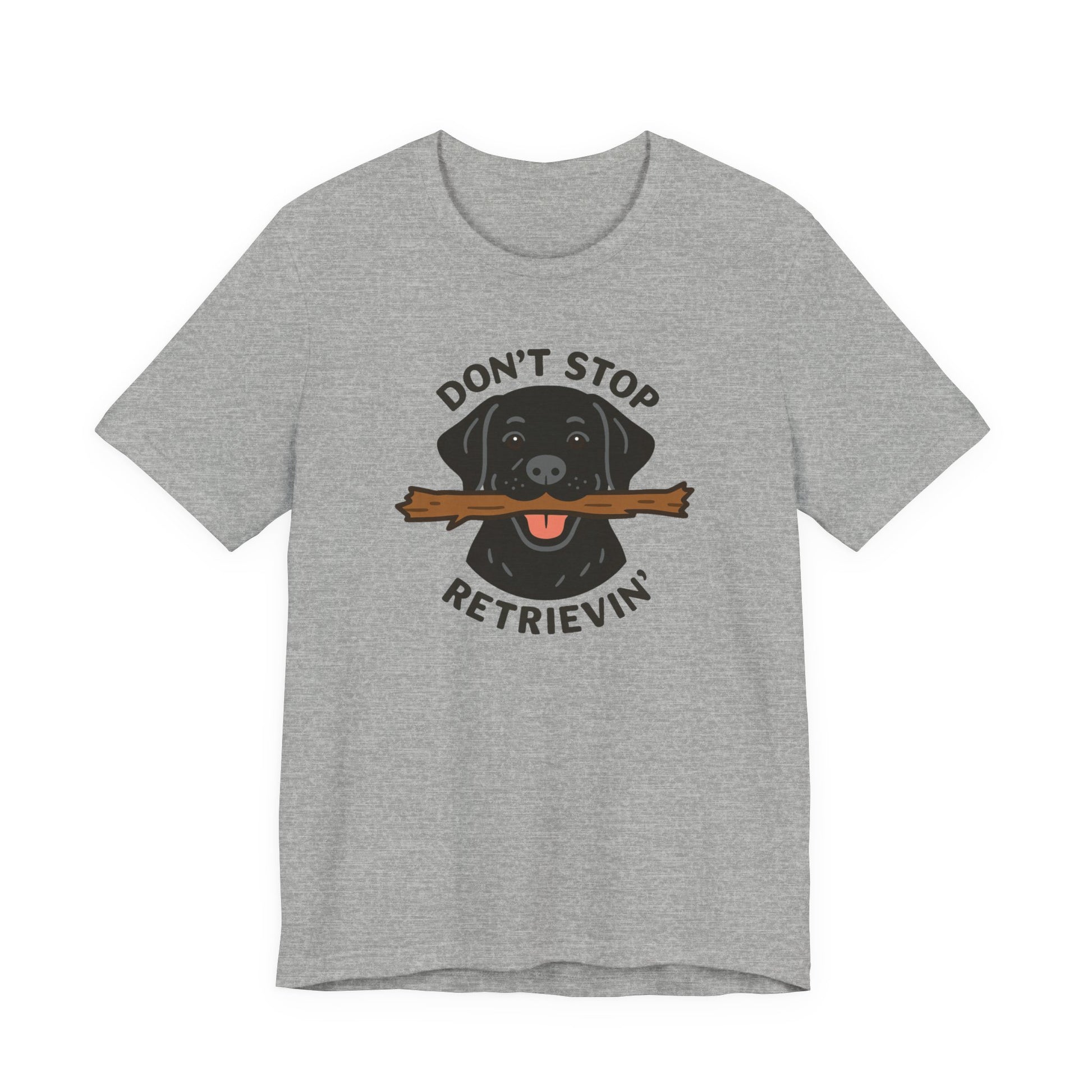Don't Stop Retrievin' Black Lab Tee - Stick Fetch Edition