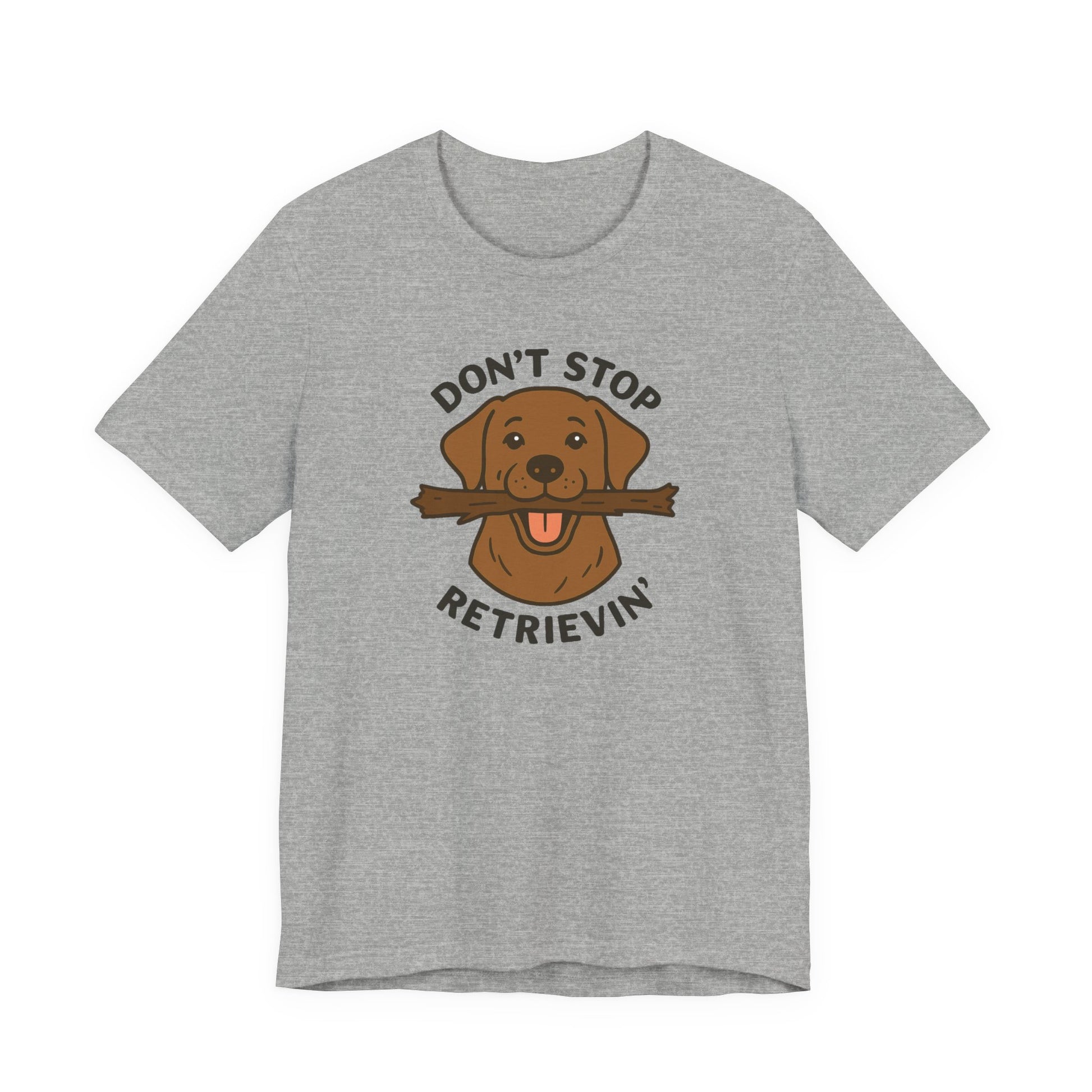 Don't Stop Retrievin' Chocolate Lab Tee - Stick Fetch Edition