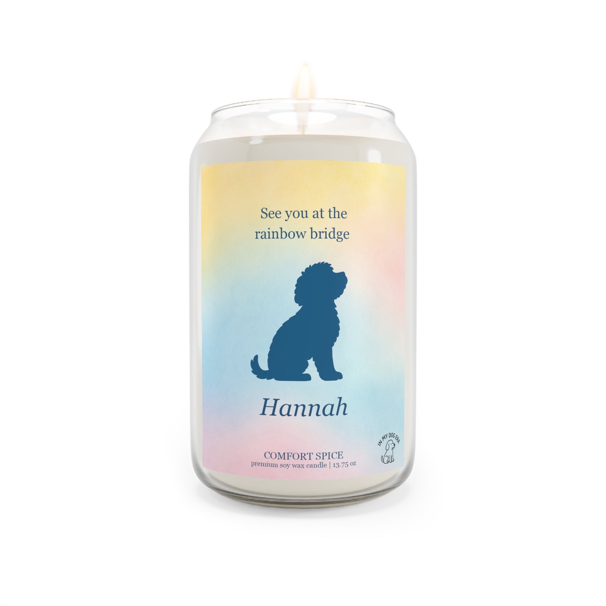 Honor the joyful spirit of your Doodle with our exclusive personalized Rainbow Bridge Memorial Candle, a soothing remembrance candle designed for dog parents healing from loss. Whether your heart belonged to a Goldendoodle, Labradoodle, Bernedoodle, Aussiedoodle, Sheepadoodle, Cavapoo, or any other Doodle mix, these beloved dogs are known for their bright personalities, gentle hearts, and the way they bring pure sunshine into everyday life. This candle was created to celebrate that happiness — and to keep their warm, loving glow shining long after they’ve crossed the Rainbow Bridge.
