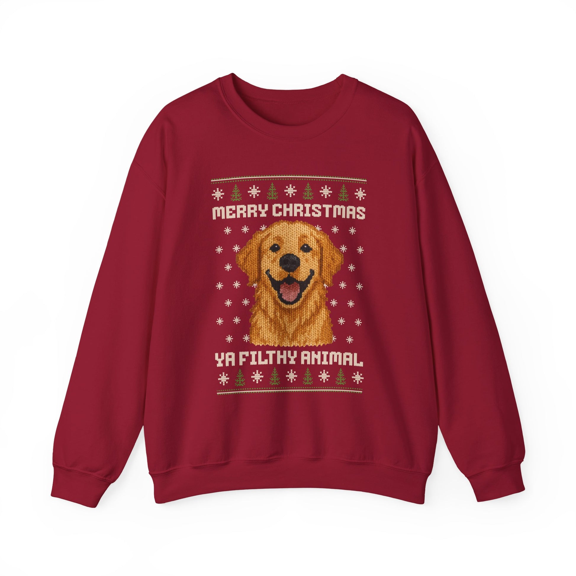 Golden Retriever Merry Christmas Ya Filthy Animal Ugly Christmas Sweatshirt