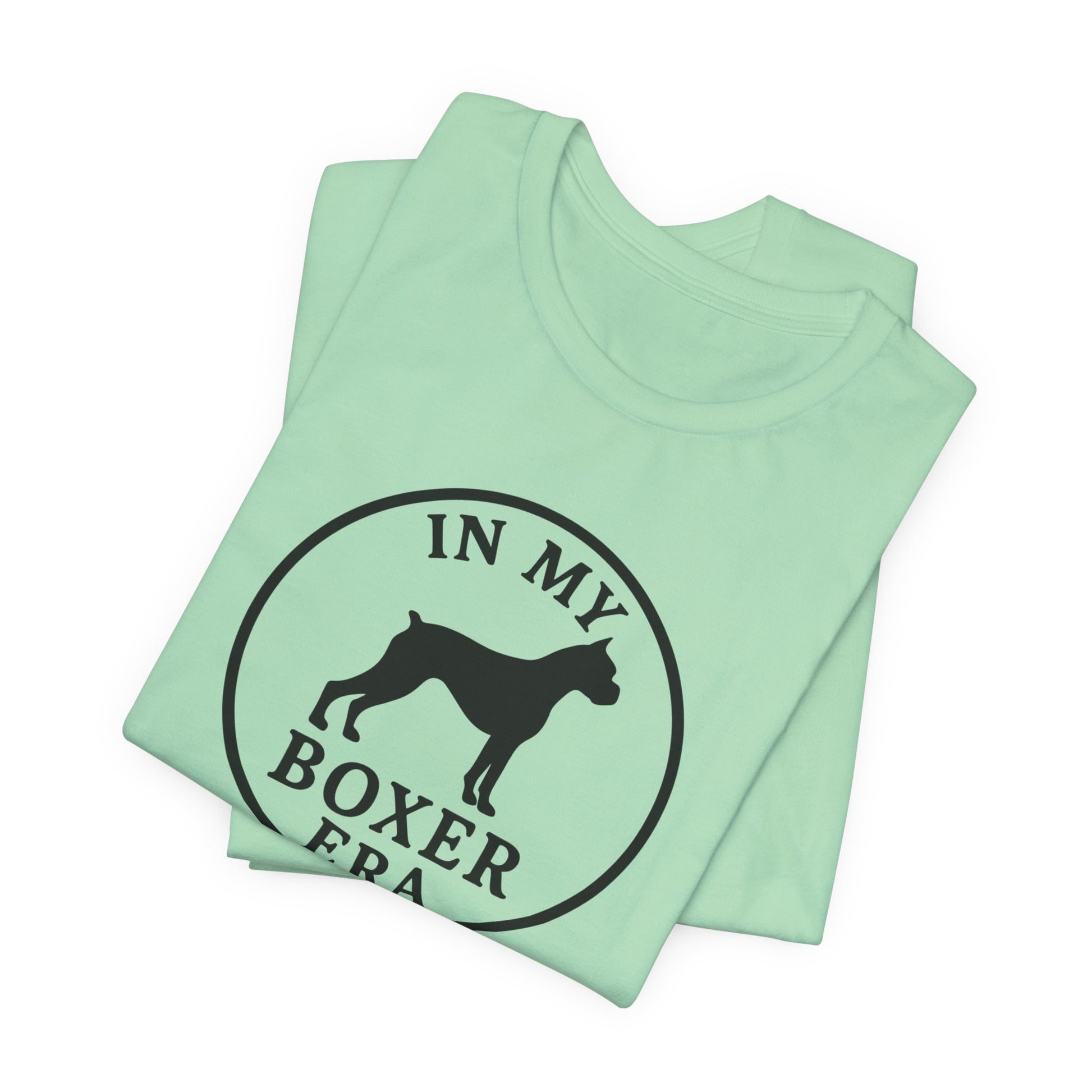 Celebrate the goofy, loyal, and high-energy spirit of your favorite wiggle-butt companion with our In My Boxer Era Tee. Featuring a bold Boxer silhouette and clean, modern lettering, this dog-lover shirt is perfect for Boxer moms, Boxer dads, and anyone obsessed with this playful, expressive breed. Made with premium, soft fabric for all-day comfort, it’s an ideal gift for Boxer owners, rescue supporters, and fans of brindle, fawn, and white Boxers alike. Whether you’re out on a walk, hanging at home, or showing off your pup’s big personality, this Boxer t-shirt proudly declares you’re living your full Boxer Era.
