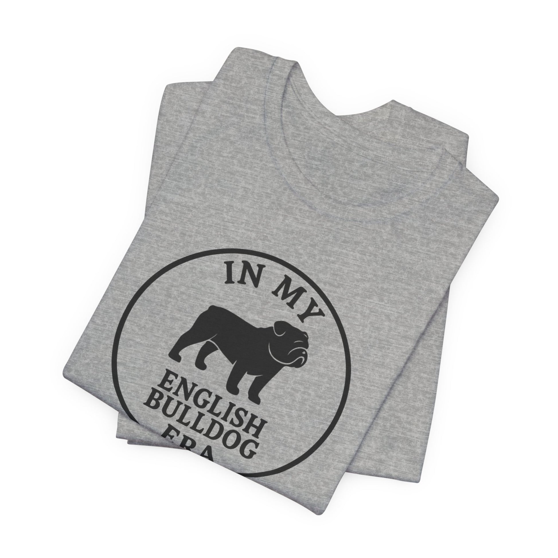 Celebrate your love for the most lovable, wrinkly companion with our In My English Bulldog Era Tee. This premium dog-lover shirt features a bold English Bulldog silhouette and clean, modern lettering. It's perfect for bulldog moms, bulldog dads, and anyone obsessed with this iconic breed. Made for comfort and everyday wear, it’s an ideal gift for English Bulldog owners, rescue supporters, and fans of the breed’s goofy charm. Whether you’re out for a walk, heading to the dog park, or scrolling bulldog videos at home, this English Bulldog t-shirt lets everyone know you’re fully in your Bulldog Era.