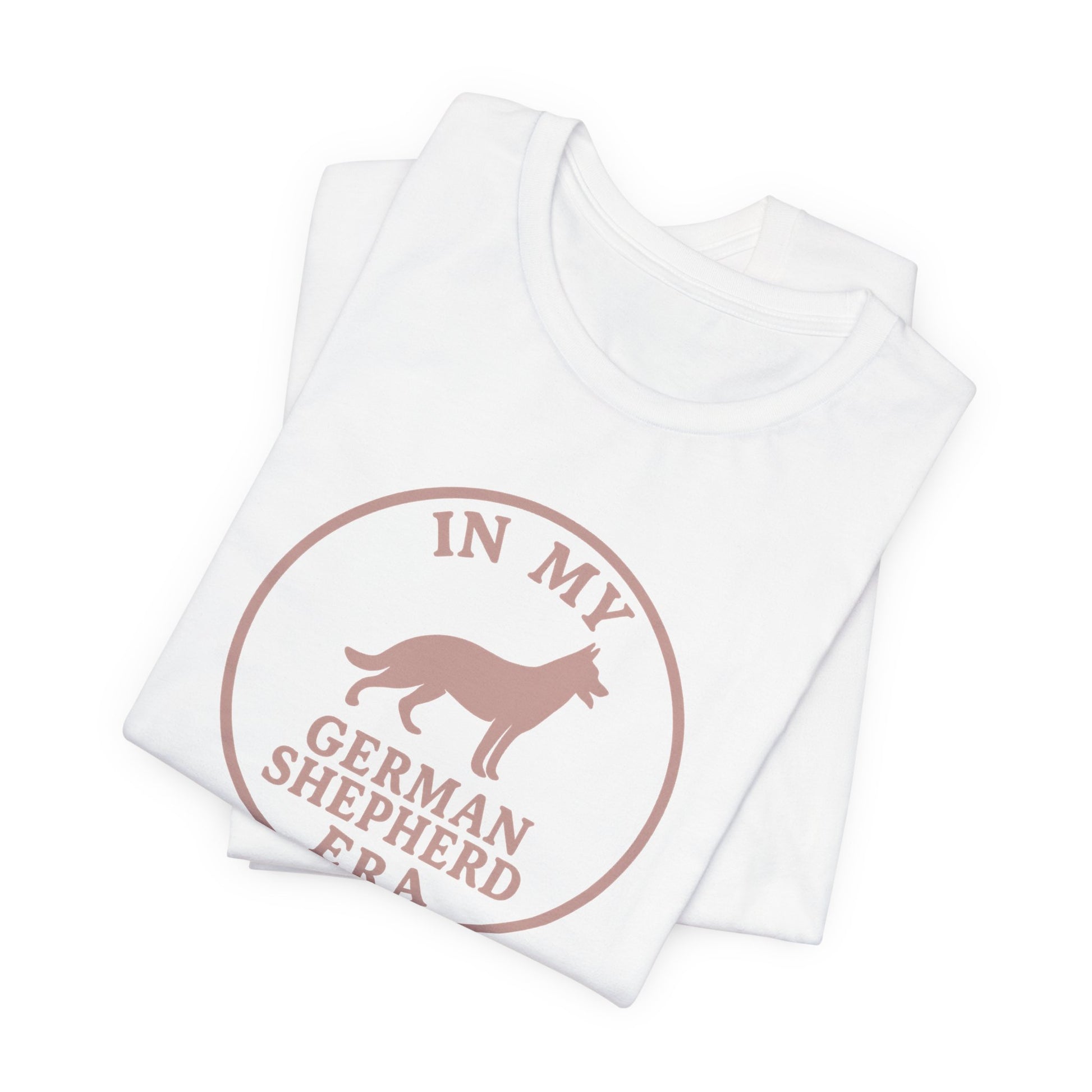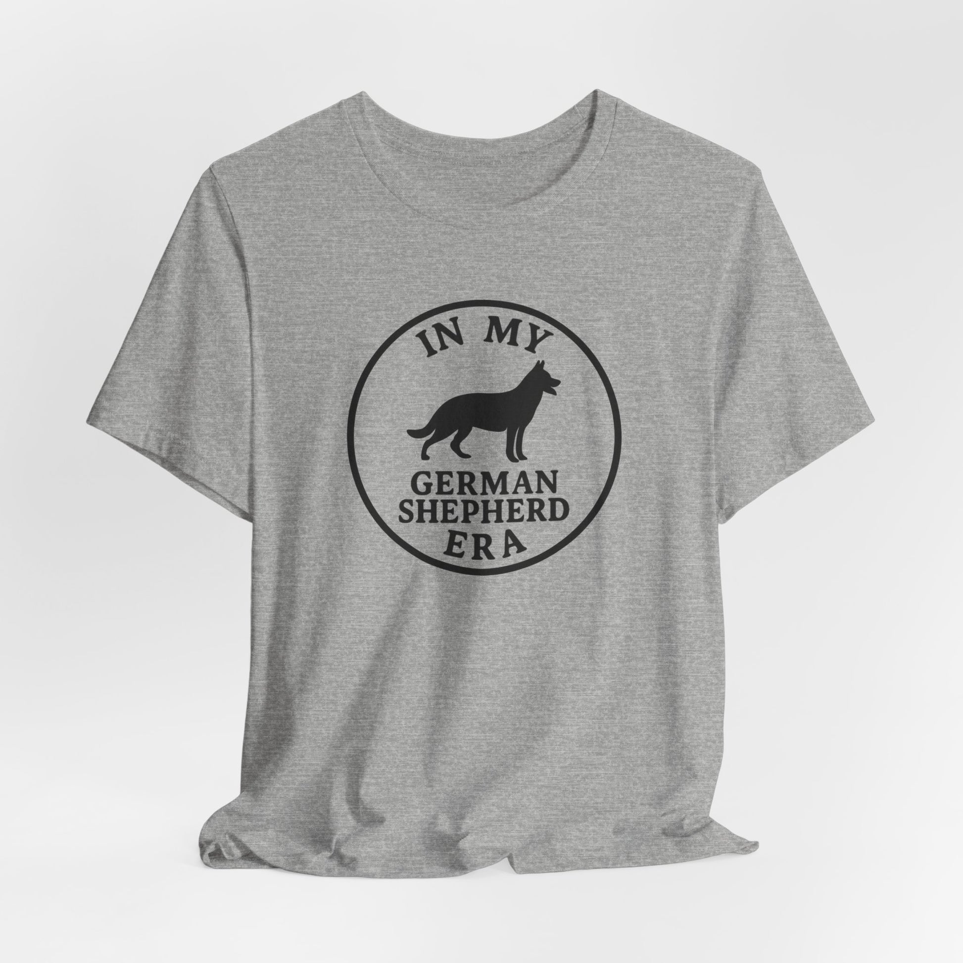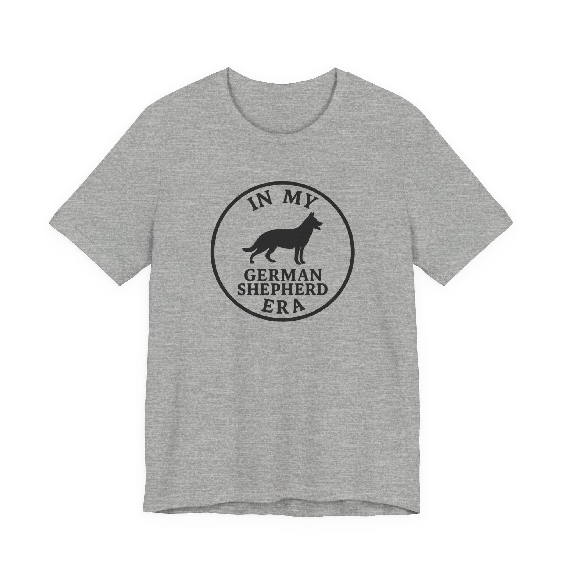 Honor the loyalty, strength, and intelligence of one of the world’s most iconic breeds with our In My German Shepherd Era Tee. Featuring a bold German Shepherd silhouette and clean, modern lettering, this dog-lover shirt is perfect for GSD moms, German Shepherd dads, and anyone who admires this courageous, devoted breed. Made with premium, soft fabric for everyday comfort, it’s an ideal gift for German Shepherd owners, working dog enthusiasts, and fans of black-and-tan, sable, or solid black shepherds. Whether you're out training, on a hike, or relaxing with your loyal companion, this German Shepherd t-shirt proudly declares that you’re deep in your German Shepherd Era.